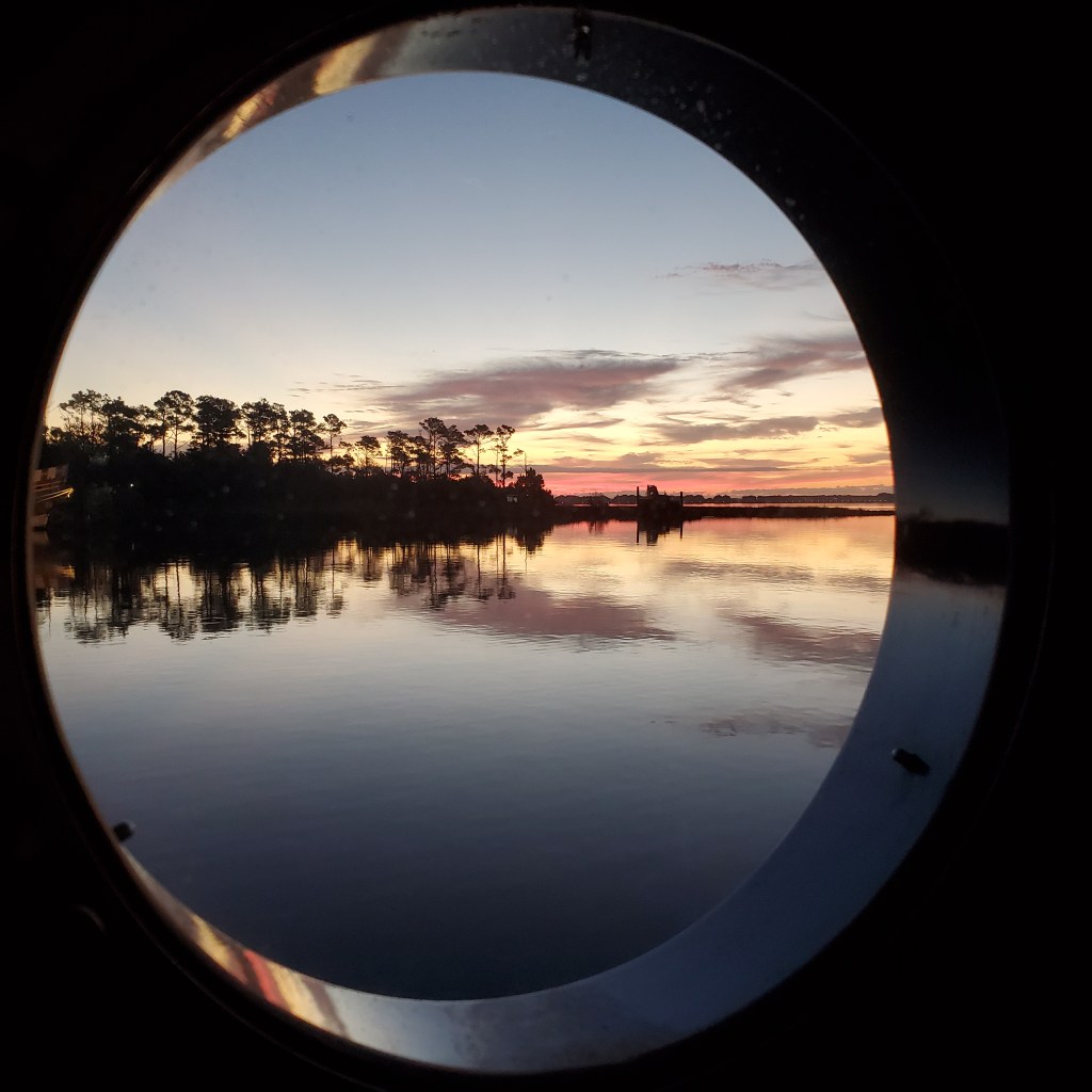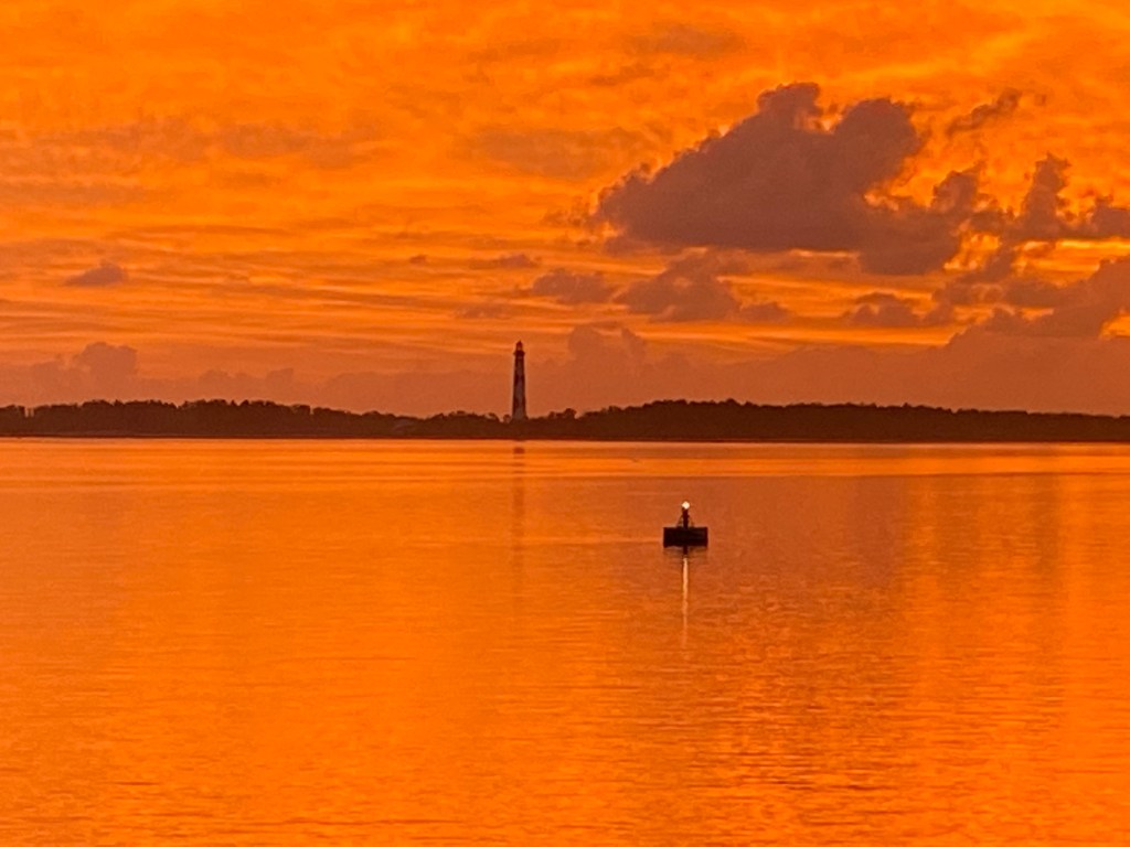 We had avoided OBX (Outer Banks of North Carolina) on previous travels up and down the coast due to skinny waters (shallow). Indeed, we saw a low of 1′ below our keel as we entered Manteo. The crossing of the Pamlico Sound and Albemarle Sound were also required to navigate to the islands necessitating calm winds to avoid big waves. One more challenge was shoaling. At the entrance to Manteo where the local knowledge of the dockmaster was essential. Heavy shoaling at the north entrance to Ocracoke had caused the markers to be located quite a distance from the electronic charts. Luckily, Captain Scott is cool and calm and handled everything with precision.