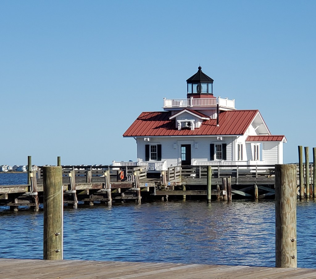 Nearby, the Elizabethan Gardens were filled with butterflies, gorgeous flowers and sweet smelling trees. In fact, everywhere we went in that town smelled like delicious perfume. From our marina we strolled around the town’s boardwalk and out to the Roanoke Marshes Lighthouse.