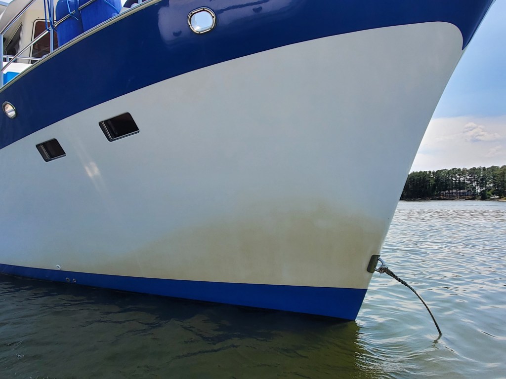 Onancock, called the “Gem of the eastern shore” by Capt. John Smith in the 1600’s, is now one of our favorite Chesapeake Bay towns. We dropped the hook in a lovely anchorage just outside of a sweet little marina where all the boaters were outside chatting together in the evenings. We inadvertently timed our stay to coincide with the Saturday farmers/artisans market where we tried garlic scapes which I highly recommend. Charm oozes from this little town. We spent a couple of hours working on our mustache…that is the mustache on the bow of Unforgettable caused by stains from the ICW and rivers. Plain old cheap lemon juice works like a charm.