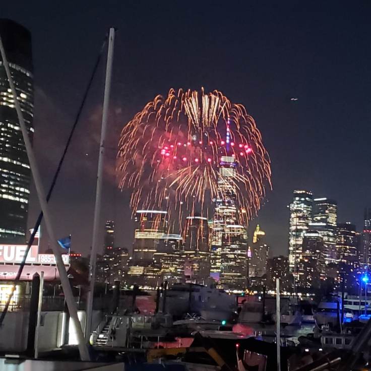 Docking at Liberty Landing Marina provides the best views of the city which can only be achieved from across the water. The flybridge was the perfect viewing spot for the fireworks on the fourth of July with the Freedom Tower in the background.