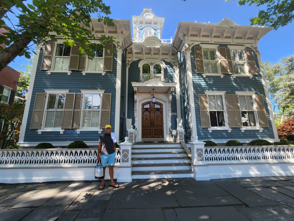 After some arm twisting I finally persuaded Scott into visiting the Hadwen House which is the current home of the Nantucket Lightship Basket Museum. I understand his lack of enthusiasm for basketweaving but after a few minutes his interest was peaked. Basket weaving as an art form is an iconic symbol of Nantucket that began in the 1820’s. The name “Lightship Basket” comes from the baskets woven by the men who were stationed aboard the lightships that marked the dangerous shoals around the island (Think lighthouse in a floating boat.) The four elements of a lightship basket include staves made of rattan, weaver of cane, a solid wood base and woven on a mold. It was believed that the roots of the style came from the Indigenous Wampanoags. Life aboard was a dangerous and lonely yielding leisure time for the men to weave. In 1916 the government forbade the business of moonlighting basketmaking and the tradition was continued on land. Classes have continued to be taught in Nantucket today. We were amazed at the skills required to create the baskets, in particular the nested ones and the minute ones. The fine manual dexterity required to contruct such precise and intricate baskets must be difficult for men’s fingers.