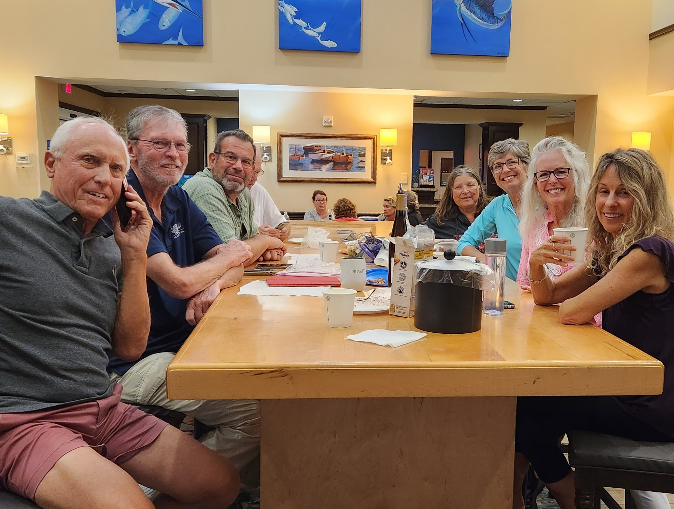 On Thanksgiving morning a Kadey Krogen pulled up to the fuel dock near our slip. The dock hands were off for the holiday so we went out to help them and learned that they were officially completing the Great Loop, a trip of about 6000 mi. up the US east coast, across Canada, down the rivers back to Florida! This was a day of celebration! Of course, we invited them to our Thanksgiving meal as they were going to have grilled cheese sandwiches…that’s just what we boaters do! We enjoyed spending time with John and Ann from Blue Yonder and congratulate them for their completing their grand adventure.