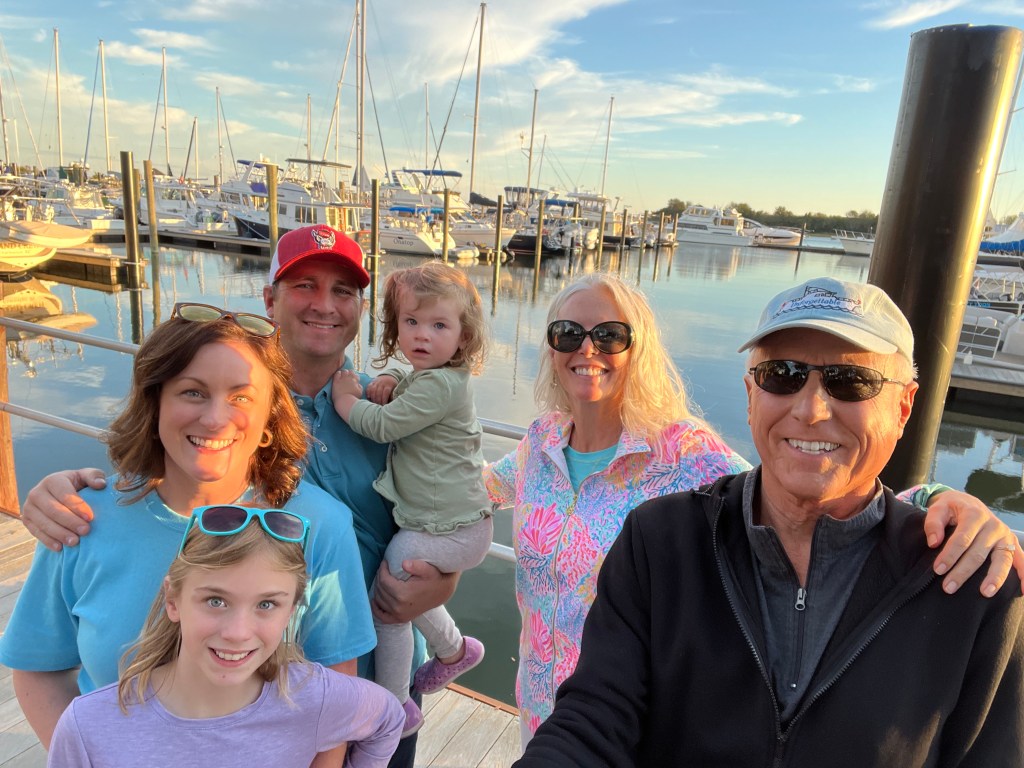Due to boat insurance regulations we couldn’t go south of North Carolina until October 24. We made the most of the pause and enjoyed 3 nights at the Morningstar Marina in Southport with Scott’s family: his brother and sister-in-law, nephew, niece and her husband and 2 sweet daughters. During this time the screen on my phone malfunctioned and I had to get a new phone. What a debacle that was! I’ll spare the frustrating details.