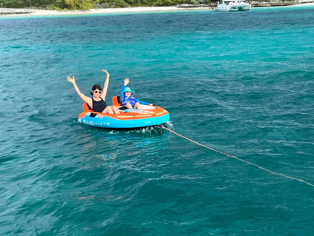 Although our fishing experiences were unsuccessful we did take a hike to the windward side of Stocking Island to find shells and see the big waves. There were rides on the towable and kayaks, and dinghy excursions to several beaches to build sand castles and swim. We had sand in every crack and the saloon carpet was full as well!