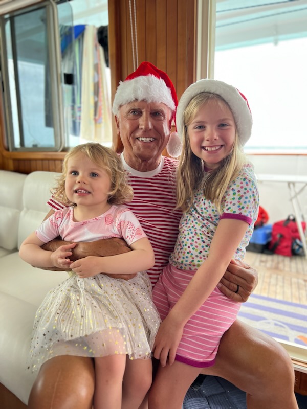 Our granddaughters Juniper and Sylvia, ages 9 and 3 entertained us for 11 days. We thank their parents, Ryan and Lindsey, for schlepping all the way from Seattle to George Town to spend Christmas with us. It was an absolute delight having the girls on board and we loved sharing the wildlife experiences with them. They saw several sea stars, petted a sting ray, swam with the turtles, saw many types of fish and were on the SUPs (stand up paddleboards) amongst a pod of dolphins.
