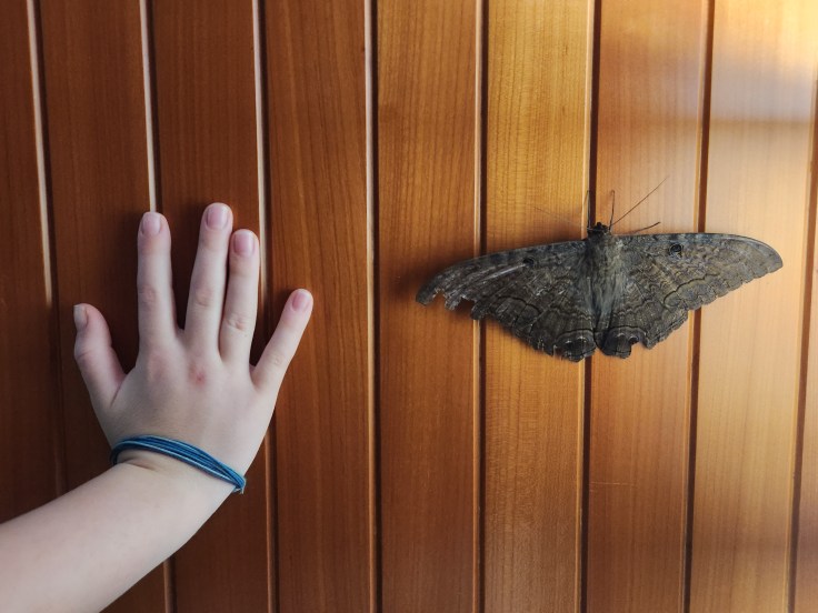 Mr. Moth stayed in the saloon for several days until I realized he was pooping and we had to gently encourage him to leave.
