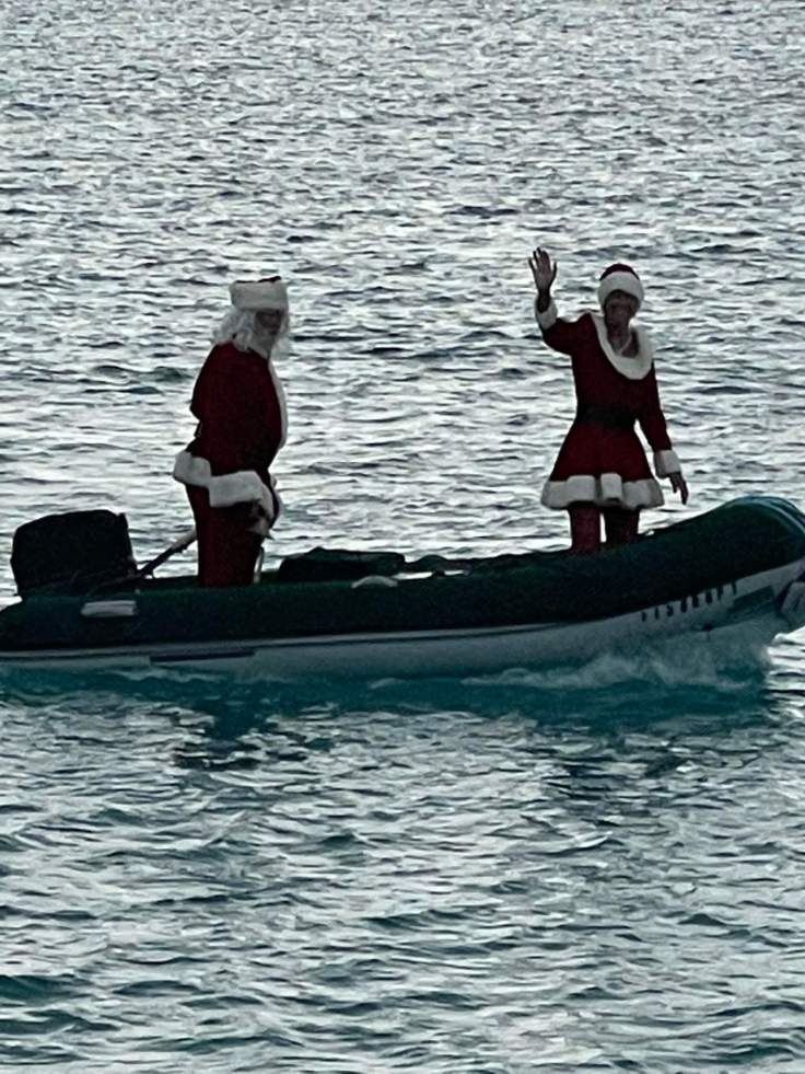 Sun, sand, water and wildlife make for a brilliant December! Our average highs were 80 and average lows were 72 and very few rain showers. No, I didn’t miss the cold and snow one little bit but it did feel a little strange seeing Santa and Mrs. Claus visit Unforgettable via dinghy!