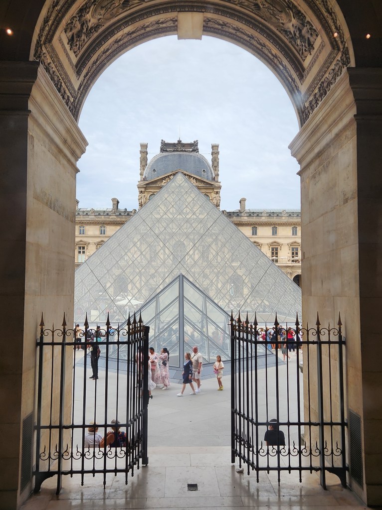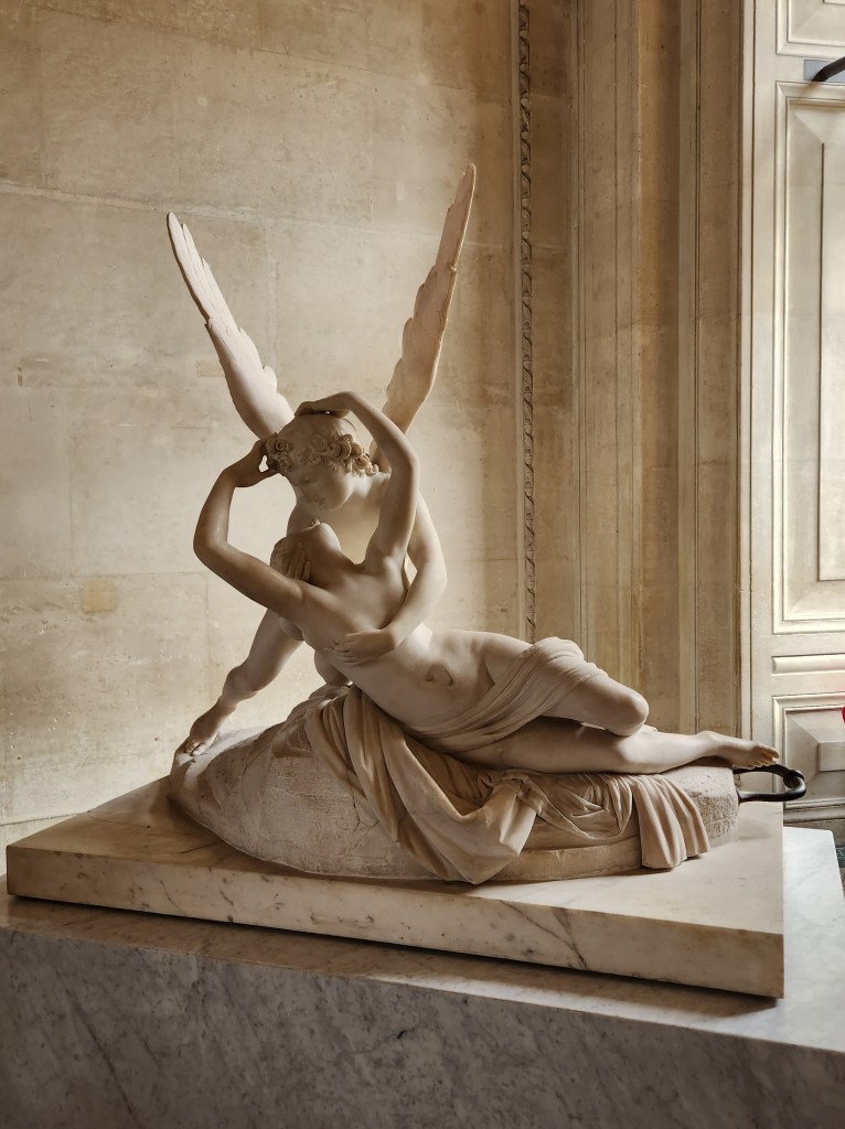We were overwhelmed by the size and collections in the Louvre. Generally we joined guided tours for museums but for some odd reason we did not here and it was a mistake. We attempted to use the self-guided tours from the Louvre on their devices that seem to be created for gaming. After asking 7 employees how to utilize them we finally gave up because they couldn’t figure them out either. My favorite work was Psyche Revived By Cupid’s Kiss, a marble sculpture from 1787 by Antonio Canova. It was the first of many times when I was overwhelmed by the skills of sculptors. The ability to show light layers of fabric, locks of hair, tender expressions, movement and space within a piece of stone truly have to be seen to be appreciated.