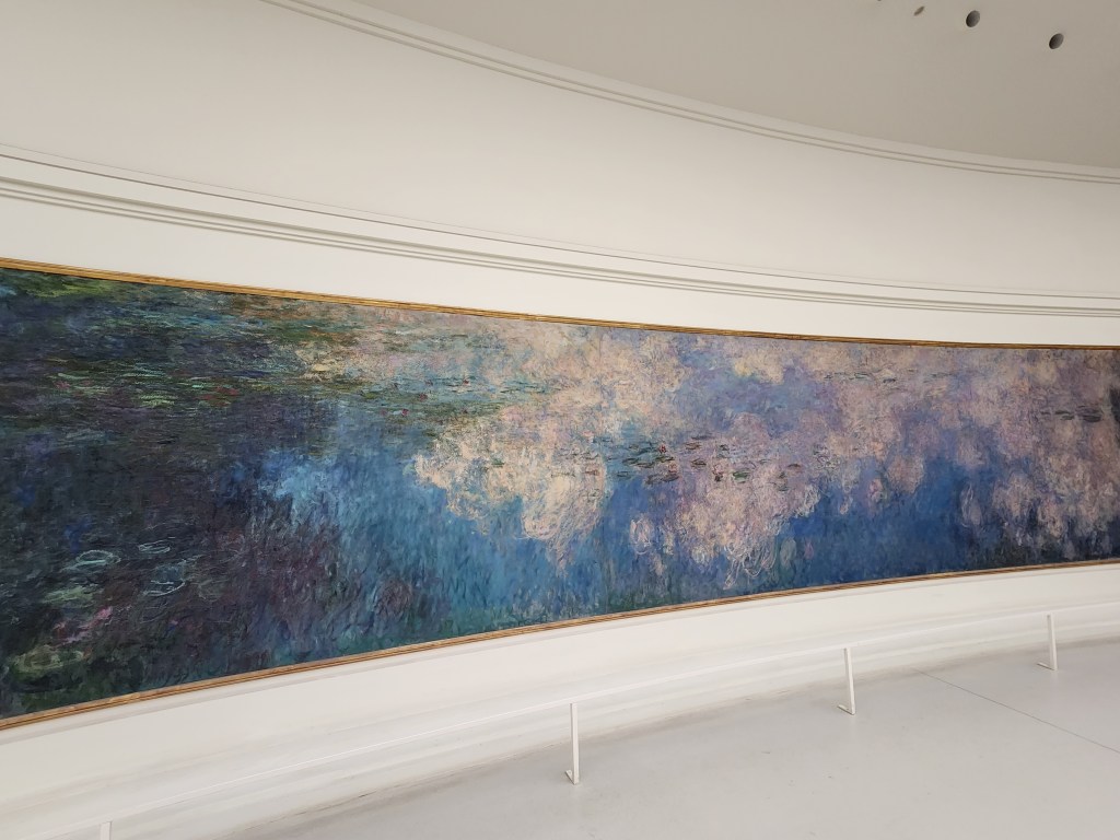 My favorite Parisian museum was the Musée de L’Orangerie. Here I was filled with peace in the two quiet oval rooms lined with Monet’s Water Lilies. The collection of other impressionistic and post-impressionistic works was notable as well. The 1113 stained glass windows dazzled me in Sainte-Chappelle. This petit masterpiece in high gothic style is gorgeous despite it’s declining condition. My third favorite experience in Paris was watching the sunset from the top of the Arc du Triomphe. Upon watching the crazy traffic on the Champs Élysées and the 10 other grand avenues were were thankful we had passed on driving in Paris. What a magnificent view of the City of Light (whose nickname comes from the Age of Enlightenment).