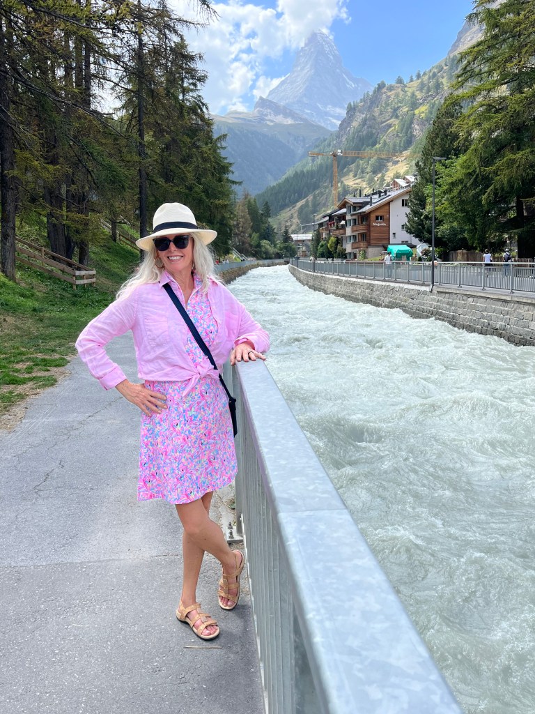 Zermatt was our third Swiss city and it completely different from Mürren. Seemingly, every other store sold high end watches and the town was quite crowded. In Zermatt the interesting Old Village had 30 homes built between the 16th and 18th centuries, raised on concrete platforms and sometimes on stilts to keep out the mice. Zermatt was overflowing with colorful flowers that were well maintained by a vehicle that could reach up to water the raised flower pots.