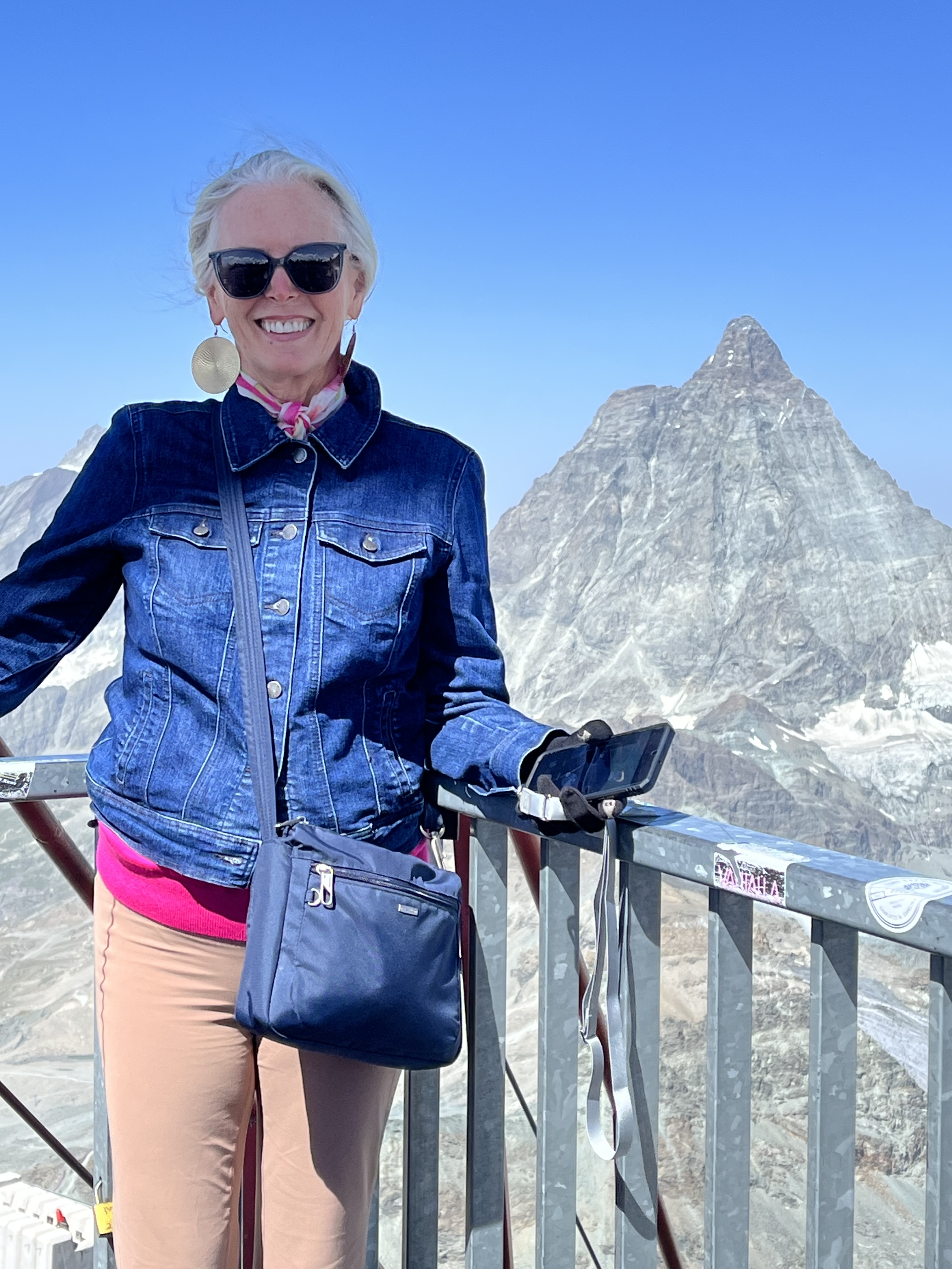 The pièce de résistance was the majestic Matterhorn, accessible only to mountain climbers. This pyramidal shaped peak is one of the highest in Europe and the most photographed. We visited Matterhorn Glacier Paradise on Klein (little) Matterhorn for prime viewing of big Matterhorn and to visit the ice cave. This time we were prepared wearing everything warm that we owned so we could stay longer to enjoy the beautiful ice carvings.