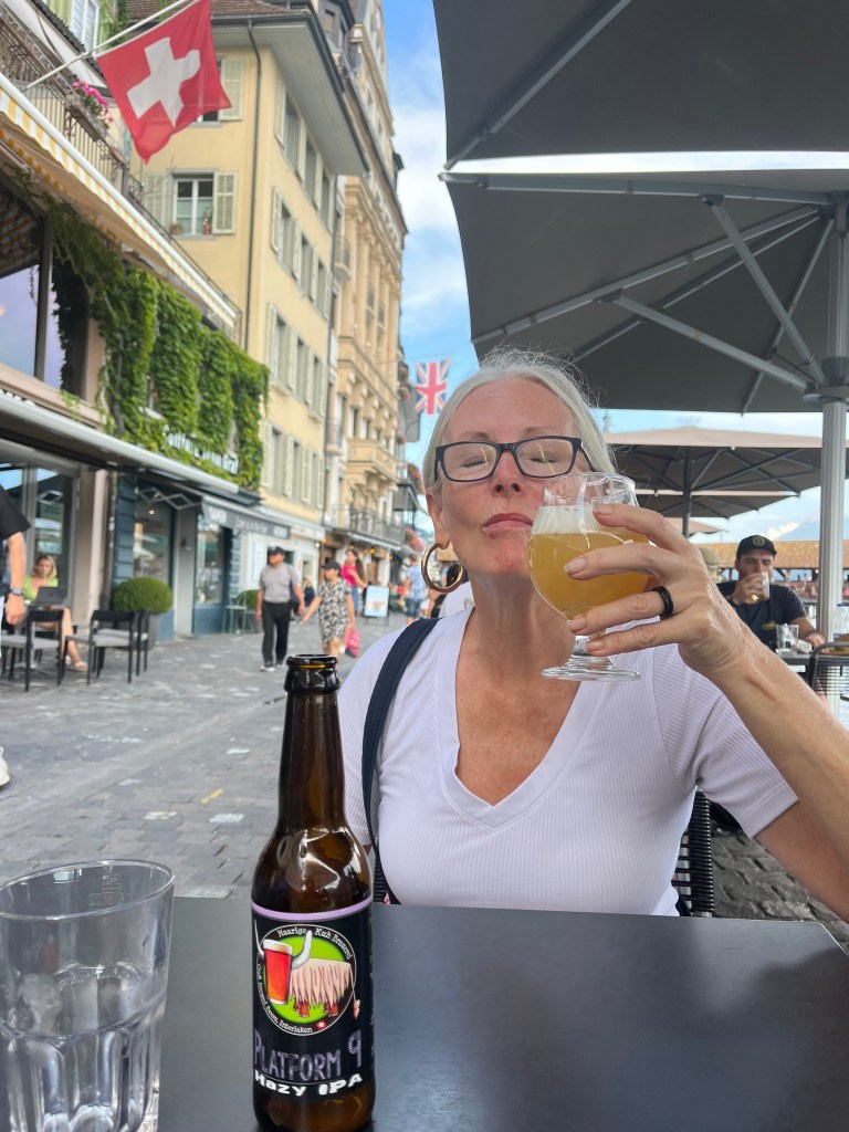 The crystalline blue waters of Lake Lucerne and Chapel Bridge, the oldest European covered bridge built in 1332, were emblazoned in my mind from a high school jazz band trip to Lucerne in 1976. Upon arrival I enjoyed a rare find in Europe…a hazy, fruity IPA! We walked to the Lion Monument which was rather sad as he was mortally wounded representing the swiss guards that were massacred in the French Revolution.