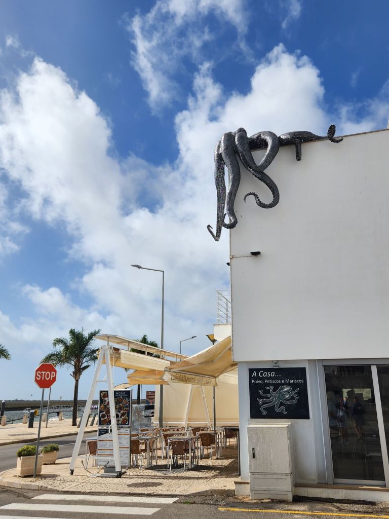 Our last 18 days in continental Europe were in Portugal where we experienced a wide variety of countryside. From our last stop in Granada, Spain, we took a train to Sevilla then had to take a bus to Tavira, on the southern coast called the Algarve. Thank goodness our AirBnB host was nice enough to pick us up and take us to Santa Luzia from the bus station as there were few Ubers. I chose Santa Luzia because it is known as the octopus capitol and it is located in the national park “Parque Natural da Ria Formosa.” This was to be our chance to hike and see wildlife. Instead, the night we arrived in Portugal it turned cold, windy and rainy…basically, this was our weather every single day we were Portugal.