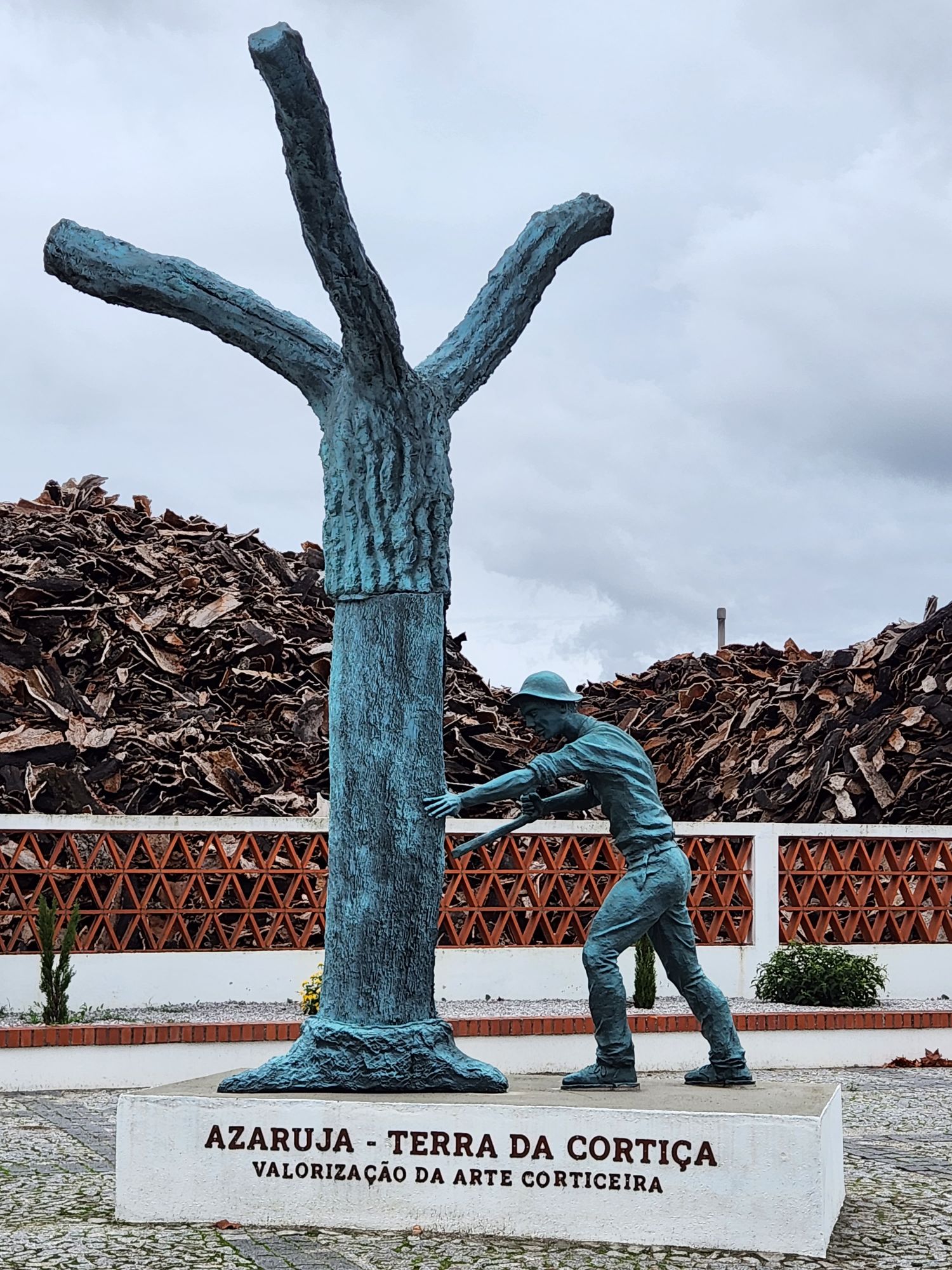 Monsaraz is located in the Alentejo region which is most famous for producing 2/3 of the world’s cork. After 2 nights in Monsaraz we stopped in Azaruja en route to Óbidos. What was meant to be a quick stop to fill our day ended up being a highlight of Portugal. After a tour of the Arte em Cortica we were flabbergasted by the versatility of cork and the trees that produce it. Look closely at the tree to see the dark portion on the bottom where the cork had been removed. This highly skilled maneuver can only be done every 9 years and cannot be harvested until the tree is about 25 years old. The cork planks are taken to a “factory” such as Arte em Cortica where they are boiled to remove debris and to soften. After sorting and grading they can be used for things such as flooring, shoes/purses, NASA heat shields, and the obvious…wine bottle stoppers. Scott purchased a baseball cap and a dress wide-brim hat and I bought a purse. The Cork Oak lives for about 150-200 years and such an amazing tree it is!