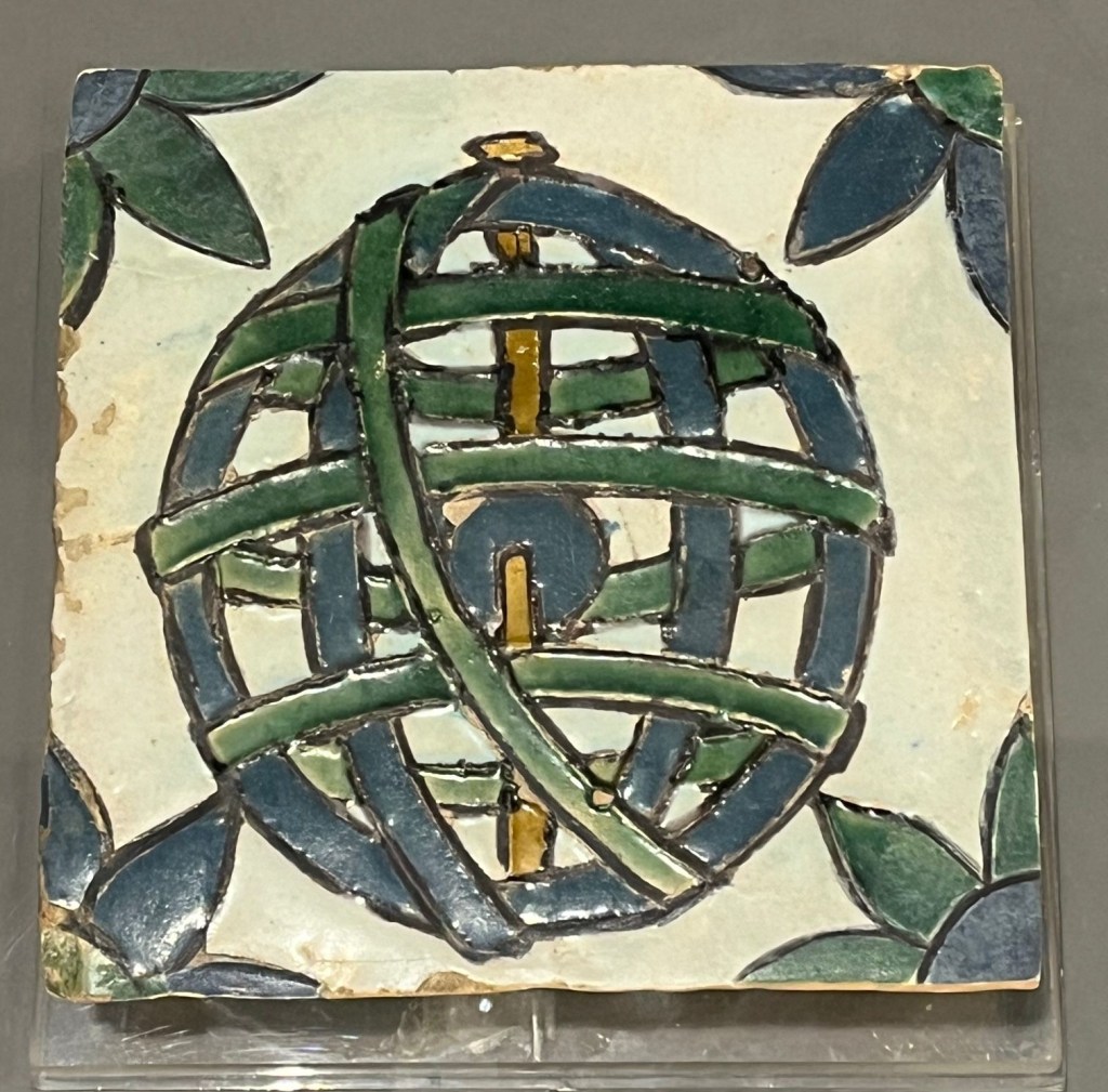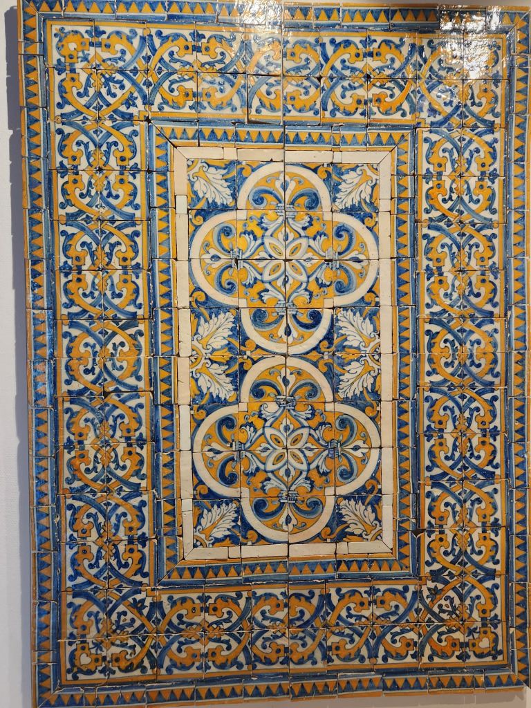 I managed to slip in one last museum, the National Tile Museum. After seeing so much lovely tile I couldn’t miss getting an education on this important piece of Portuguese cultural. The museum site itself was worthy of a visit…a former convent that housed an ornate Baroque church. The azulejos, painted glazed ceramic tiles, are popular throughout Spain and Portugal. We got the feeling that the Portuguese take the credit for the origination but, in reality, neither country did. The tiles can tell a story or create geometric patterns and the blue/white combination is believed to be inspired by the Ming Dynasty. Portuguese sailors used a navigation device called an Astrolabe starting about 200 BC, the tiles in the pics above show images of the device.