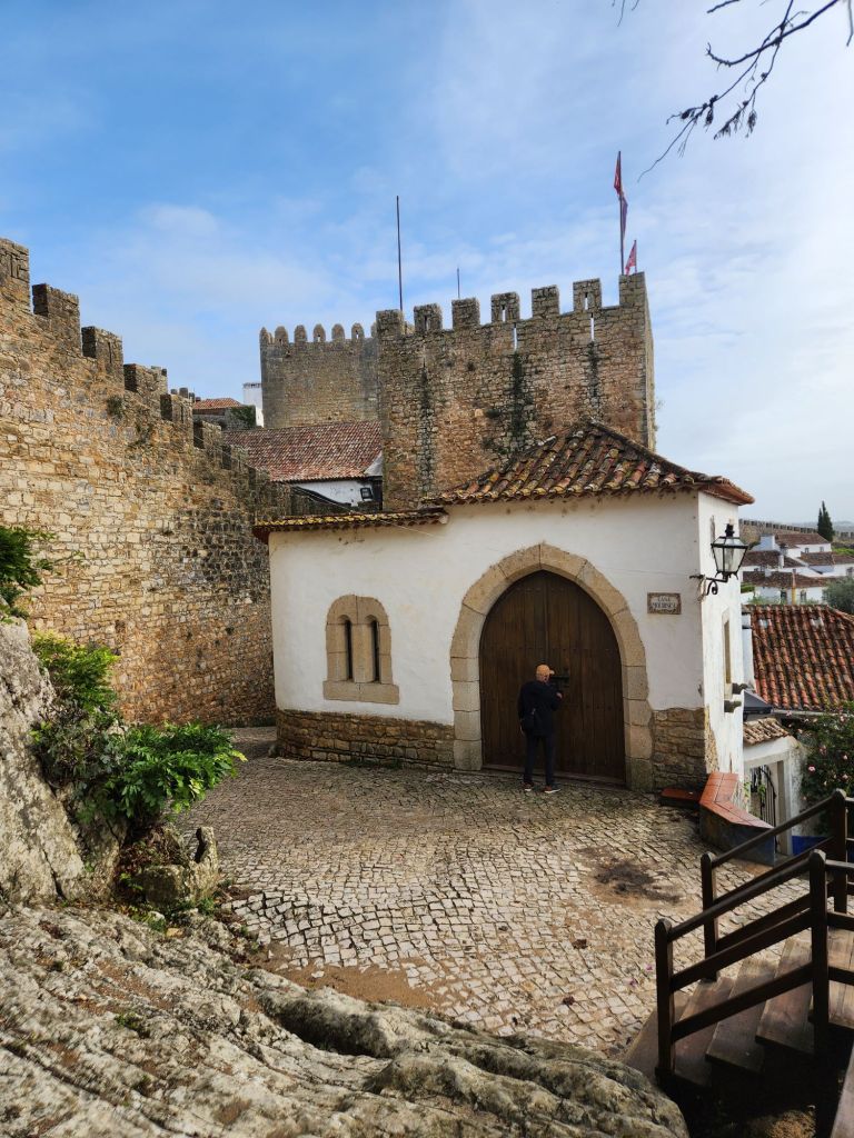 Our next two stops were walled cities without train connections so we rented a car to take us to Monsaraz, Óbidos then to Porto. The hilltop walled village of Monsaraz is home to 800 people. In this 13th century hamlet all of the walls are white -washed and streets are cobbled. Our AirBnB had spectacular views of the vineyards and fields of olive trees from our two patios.