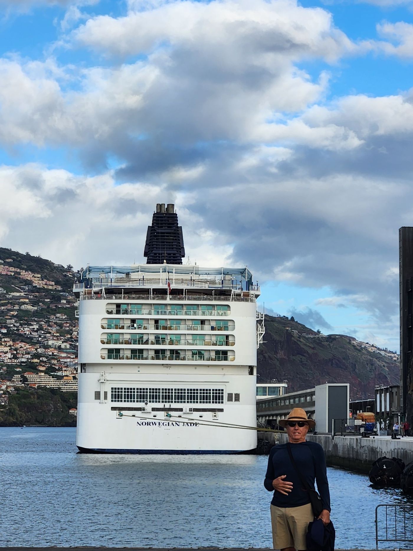Well, maybe a cruise wasn’t exactly on his bucket list but he did end up loving it. When looking at flights from Lisbon back to the USA I remembered hearing that transatlantic cruises are inexpensive. For just a little more than the cost of a flight, and 12 days of food, drinks and entertainment, we couldn’t resist the cruise. It was like pushing the “easy” button for travel. I do not enjoy long flights and what’s not to like about relaxing on a boat? We also knew that we just don’t have it in us to take Unforgettable across the ocean so why not let a captain worry about the weather?