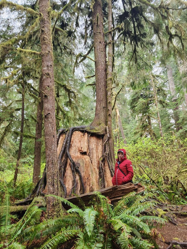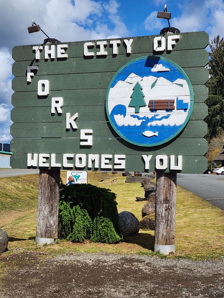 Our hike in the temperate Quinault Rain Forest in the Olympic National Park was a super wet (and it wasn’t even raining) but super cool experience. If you are wondering what makes a temperate rain forest it’s the quantity of rain…12-14′ of rain per year and the temperatures here rarely go below freezing or rise above 80*. This area is known for the world’s champion giant pine trees. We were fascinated with the fallen trees which became “nurse logs”. After a dead tree falls it provides a raised growing space for seedlings. In the dryer summers water is stored in the nurse logs which provide water for the tree roots, amphibians and other creatures. We stayed in the nearby town of Forks, famous for the Twilight series of books. In actuality, Stephanie Meyer had never been to Forks or even the state of Washington prior to writing her books. This fact doesn’t stop the town from maximizing the “Twilight” effect on tourism.