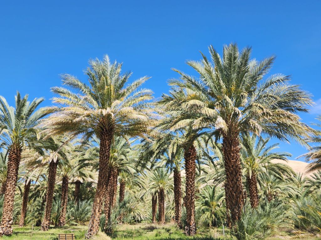 Per the suggestion of a hotel employee in Death Valley we took a detour toward Tecopa, CA, to visit the China Ranch date farm. It was in the bottom of its own little canyon surrounded by ledges and had some wonderful cacti starting to bloom. I was shocked to learn that dates grow on palm trees…I had no idea! The other visitors all stayed in the area with the store but we walked to the grove of trees and saw an interesting creature: 4-legged, very skinny, big ears and along skinny tail. He stalked us for several minutes before turning away. When we returned to the store to purchase our date shake, medjool dates, date cookies and date brownies (we couldn’t resist trying some new things and no, we didn’t eat them all in one day!), we asked the salesperson about the strange creature. She laughed and said it’s one of the mangy coyotes that comes down to feed on the fallen dates but when the dates were out of season they get really skinny. Maybe we could grow some date palms some day!