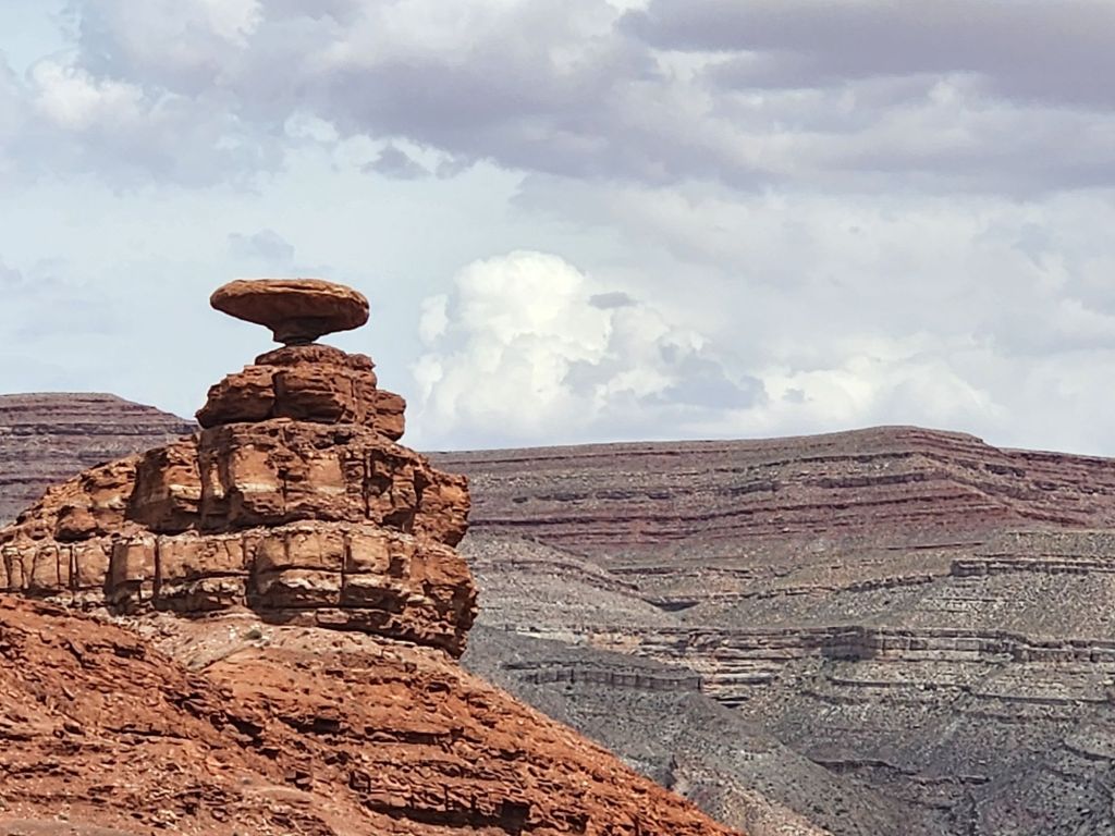 On our way south to the town of Mexican Hat, population 40, we took the 17 mile scenic drive through the Valley of the Gods. Valley of the Gods is part of the Bear’s Ears National Monument but the gravel road is rough and holey. Perhaps that’s why we only saw about 12 other cars. In these areas the vistas and rock formations were so spread apart that photos really didn’t do justice…the lands are just too big. The town of Mexican Hat is named after the nearby rock that resembles an upside down sombrero, somewhat loosely. The following day we visited the Monument Valley Navajo Tribal Park. We stood in the middle of the road to take the picture of Forrest Gump’s run through the desert. At least we didn’t lie down on the concrete like some Instagrammers! After reading the reviews of the drive through the Park we passed on on damaging our new car, it was said to be worse than Valley Of The Gods. Instead we did something even better…went to the Burger King in Kayenta!